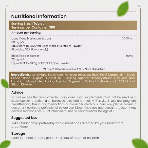 - Lion's Mane: En superstjernet medicinsk svamp, der understøtter sund neuronfunktion og kognition og giver et energi boost.